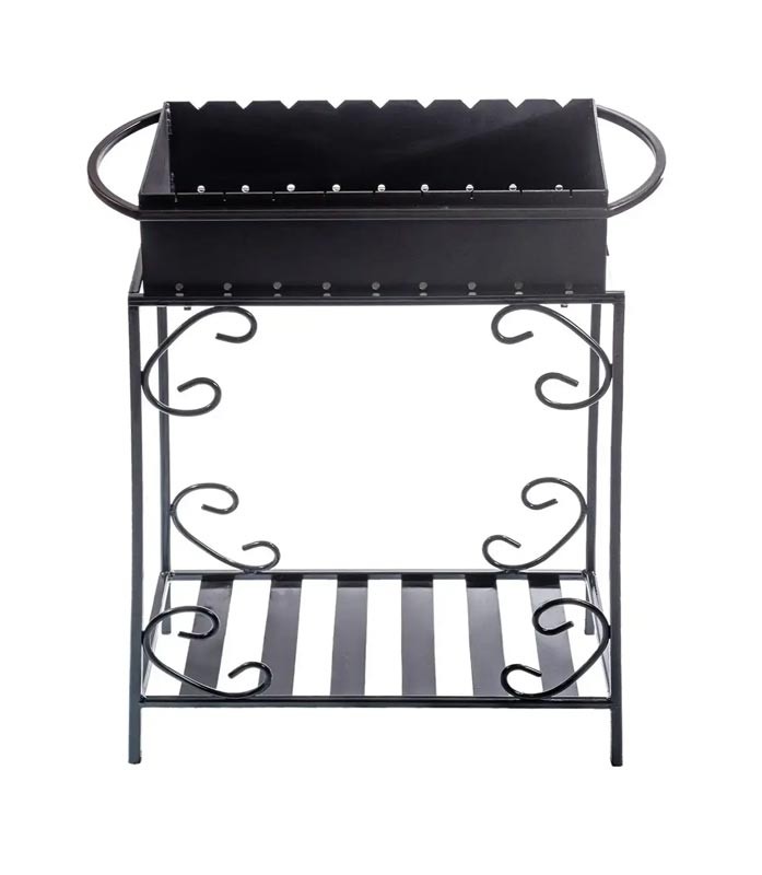 Конструкция жаровни – сварная, что обеспечивает ей прочность. Сварные усиления по периметру (труба 15х15 мм.) повышают жесткость и сопротивление температурным деформациям при нагреве.