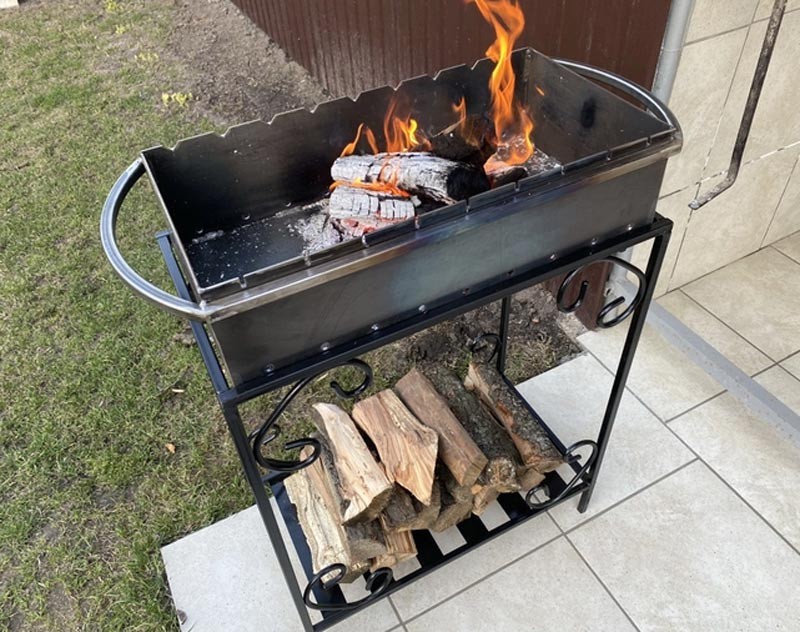Подставка — дровница обеспечивает устойчивость всей конструкции, а также служит удобным местом для хранения дров.