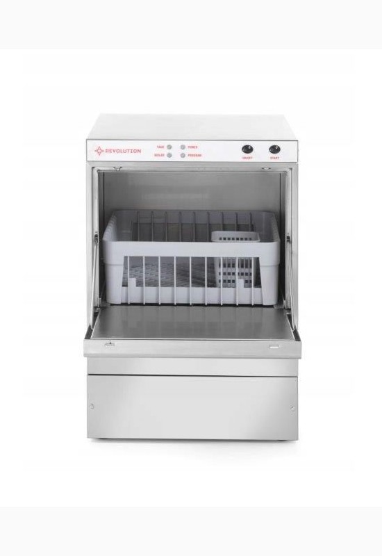 Стаканомоечная машина фронтального типа Revolution 231678 предназначена для мытья мелких тарелок, стаканов, столовых приборов в столовых, ресторанах, кафе.