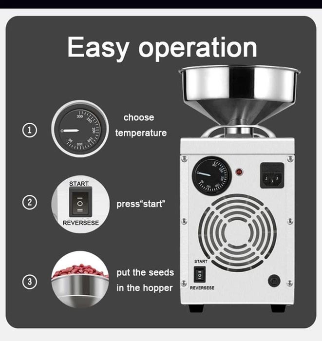 - Энергоэффективность — переработка 5 кг семян требует всего около 1,6 кВт. электроэнергии.