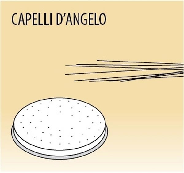 Насадка Fimar Capelli d Angello предназначена для изготовления макаронных изделий под названием "волосы ангела" - в виде клубка тончайших нитей. Используется совместно с машиной для формирования пасты MPF 2,5, PF25E