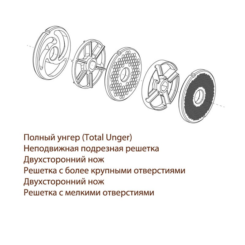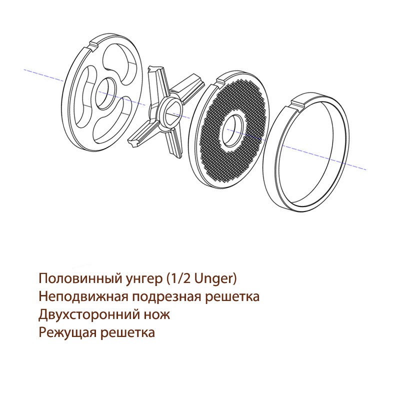 Система ножей: 1/2 унгера (подрезная решетка, решетка с отверстиями, двусторонний нож).
