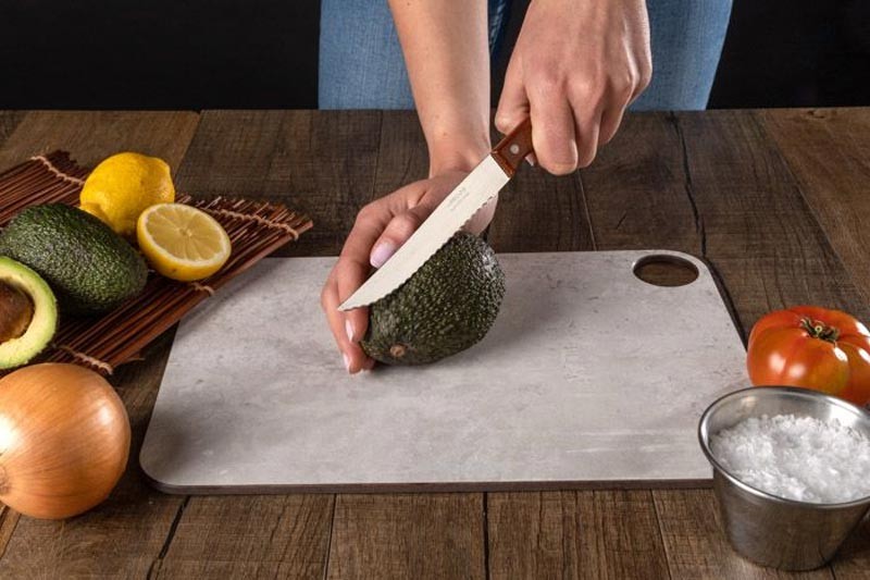 Плавные изгибы рукоятки предотвращают трение, и обеспечивают мягкий захват ножа.