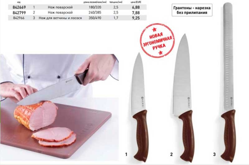 В каталоге профессиональные ножи для кухни Hendi освещены такие вопросы: описание, фото, спецификация, преимущества