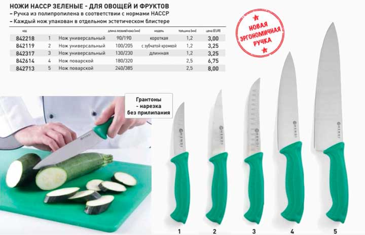 В каталоге профессиональные ножи для кухни Hendi освещены такие вопросы: описание, фото, спецификация, преимущества