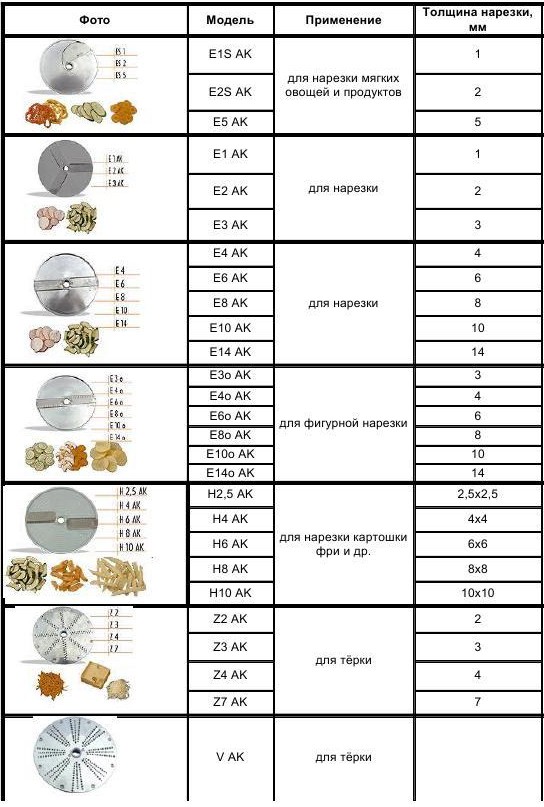 Легко заменяя диск, можно выполнить более чем 60 разных видов нарезки.