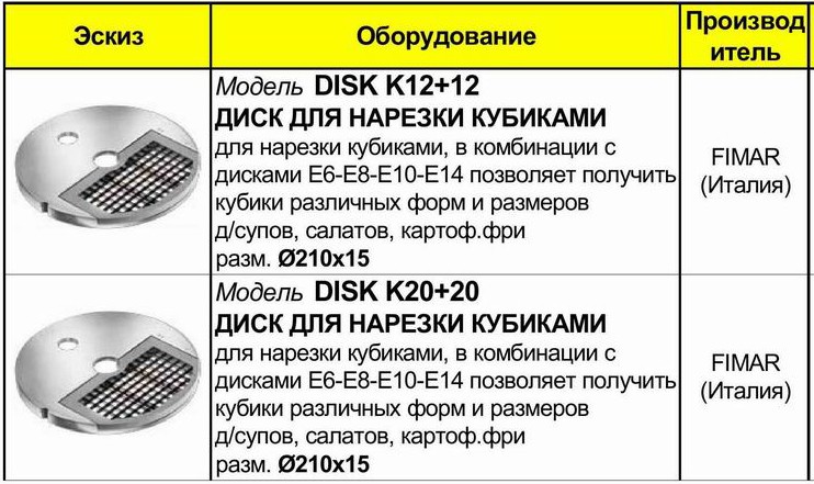 ДИСКИ ДЛЯ НАРЕЗКИ КУБИКАМИ