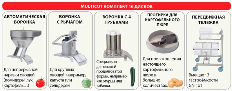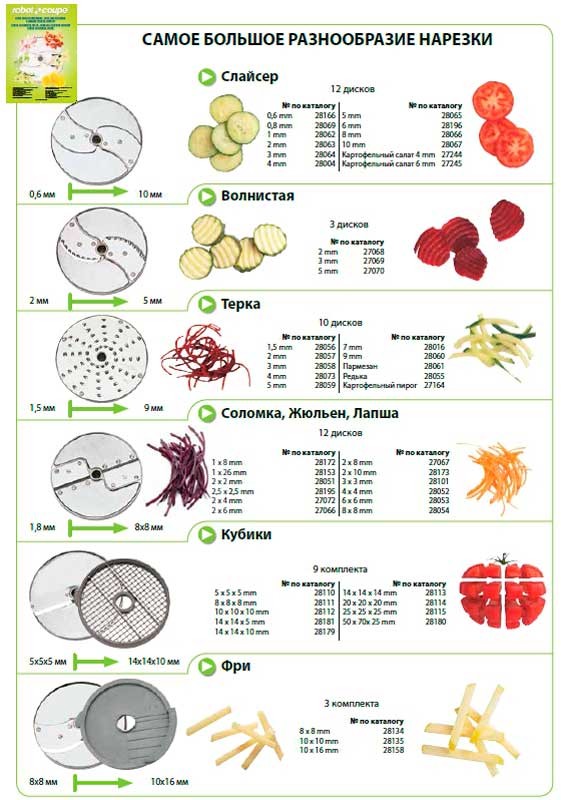 Боковой выброс продуктов позволяет использовать приёмные ёмкости большого размера и реже забирать нарезанные продукты из ёмкости;