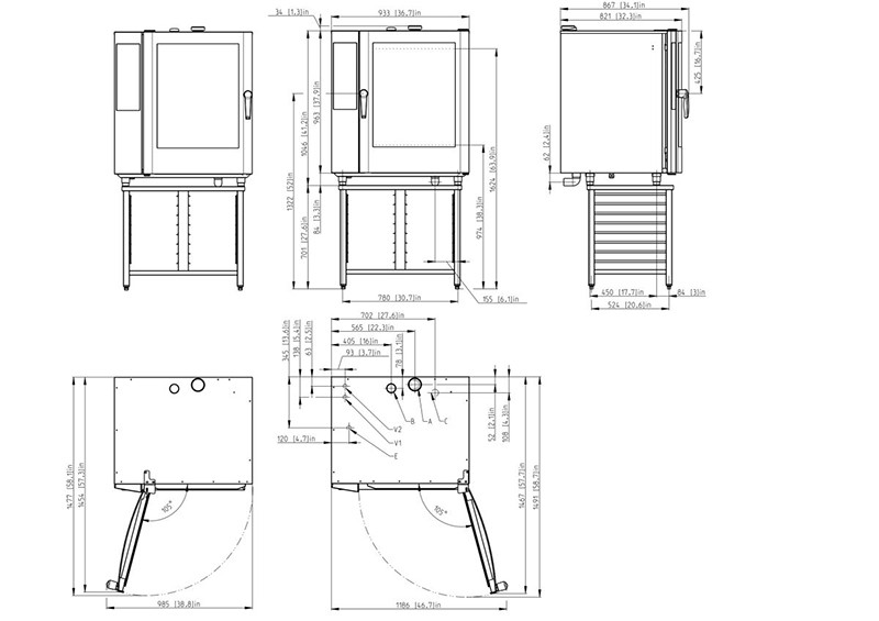 Расстояние от верхней части пароконвектомата до потолка либо вытяжки должно составлять не менее 1,5 м.