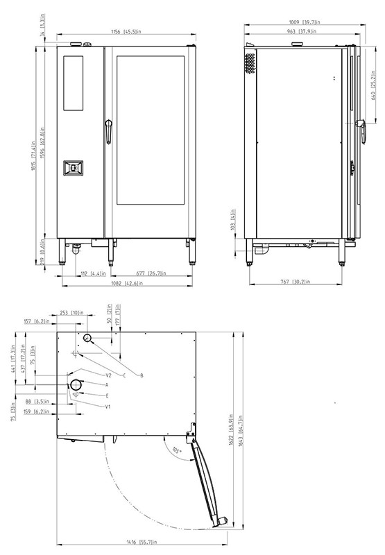 Расстояние от верхней части пароконвектомата до потолка либо вытяжки должно составлять не менее 1,5 м.