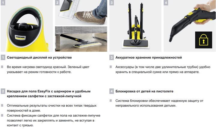 Преимущества пароочистителя Karcher SC 2 DELUXE EasyFix