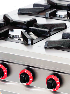 Плита ПГ-4-Б комплектуется газовыми горелками, которые обеспечивают равномерный прогрев посуды и экономный расход газа.
