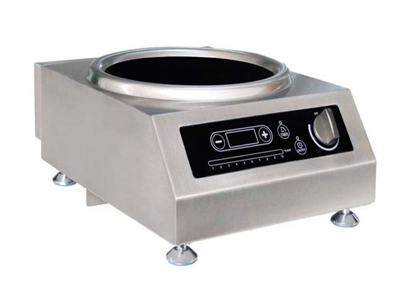 Профессиональная настольная индукционная плита WOK (ВОК) одноконфорочная в комплекте сковорода. Управление: электронное + ручка. Напряжение: 220 В. Мощность: 3,5 кВт.