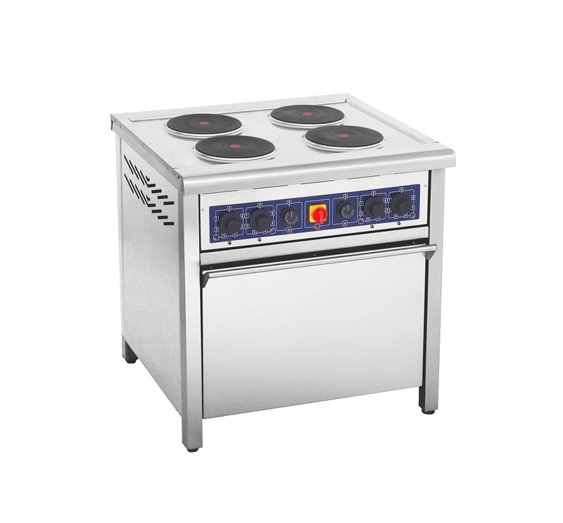 Электрическая плита КИЙ В ПЕД-4КР-К используется на кухне в ресторане, кафе, столовой. Плита оснащена узлом конвекции в духовке, поэтому можно использовать несколько противней одновременно.