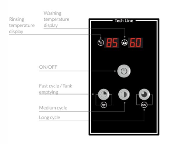 - Установленная температура: мойка при 60 С, ополаскивание при 85 С.