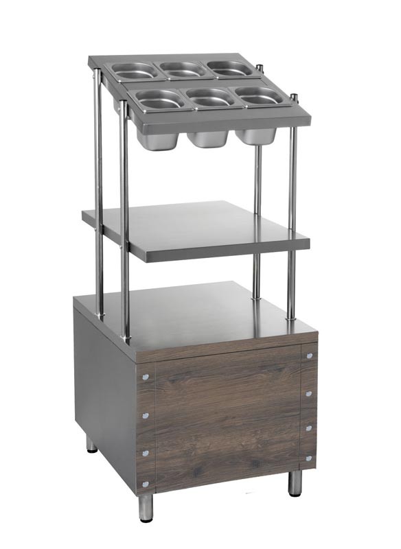 Прилавок для столовых приборов ПСП-600 Декор может использоваться как в составе линии, так и отдельно стоящим элементом.