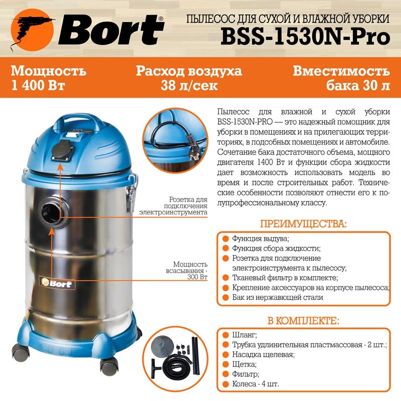 Вопросы про Пылесос Bort BSS-1530N- Pro