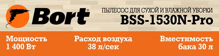 Технические характеристики Пылесос Bort BSS-1530N- Pro