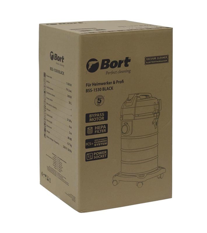 Производитель пылесоса компания Bort предоставляет гарантию 12 мес. на модель BSS-1530 BLACK