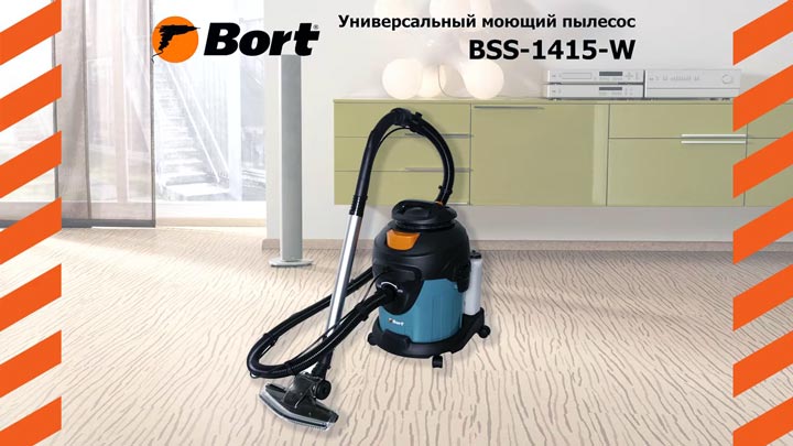 Моющий пылесос Bort BSS-1415W убирает сухой мусор, делает влажную уборку, снабжен функцией выдува. Но кроме этого он ещё и моющий пылесос. Залив в специальную емкость воду или моющее средство можно отлично почистить ковры, полы, при этом не будет никакой пыли.