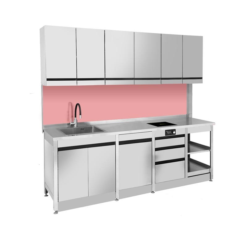 Выдвижные ящики, изготовленные из нержавеющей стали, устанавливаются на телескопических направляющих.