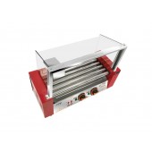 Роликовый гриль с защитным стеклом. Количество роликов: 9 шт. Длина роликов: 450 мм. Материал роликов: нержавеющая сталь. Зон нагрева: 2. Мощность: 1,7 кВт. Назначение: гриль для сосисок