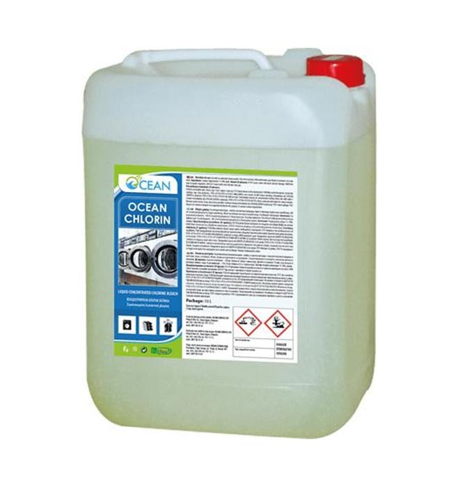 Щадящий хлоросодержащий отбеливатель OCEAN CHLORINE 20л Оушн Хлорин (Ocean Chlorine) идеальный для удаления стойких пятен, прекрасный результат по сравнению с другими хлорными отбеливателями.