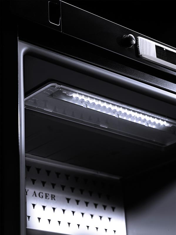 Точные параметры Интеллектуальная система управления моделей Premium S позволяет поддерживать температуру от 0 до +30 °C, а также влажность от 40 до 90 %, каждый из которых контролируется электроникой. Автоматически с помощью программ SmartAging® или в ручном режиме. Благодаря HumiControl подключение к воде или резервуар не требуются.