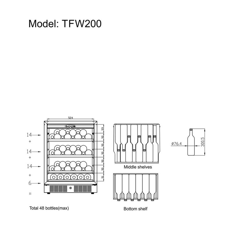 Технические характеристики Шкаф для вина Tefcold TFW200-F