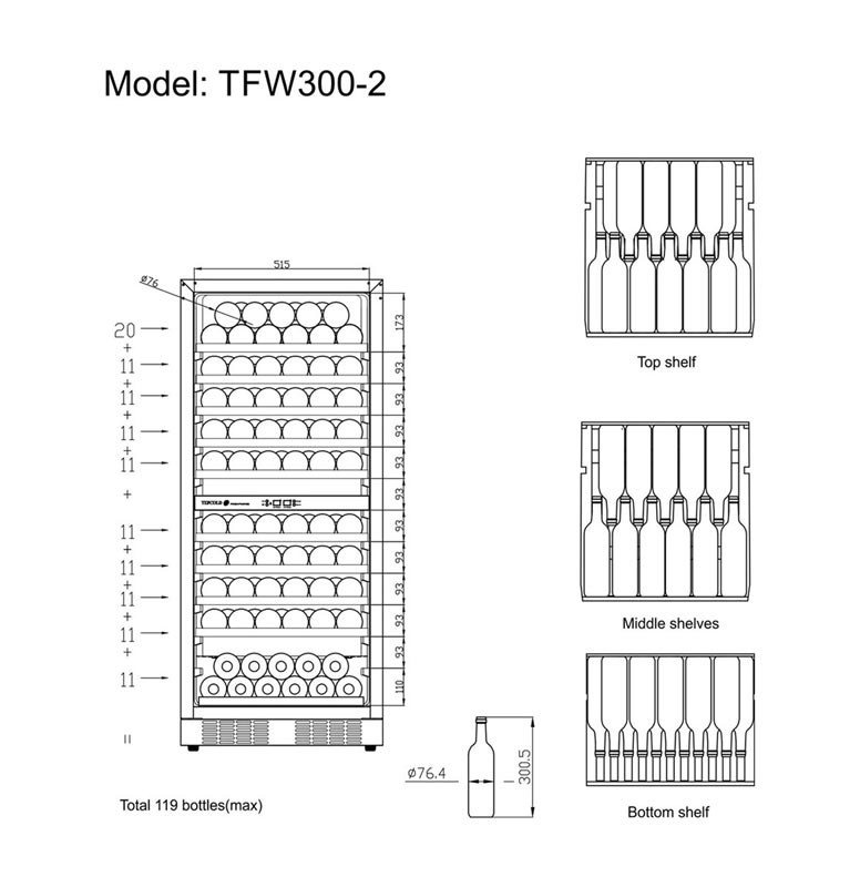 Технические характеристики Шкаф для вина Tefcold TFW300-2F