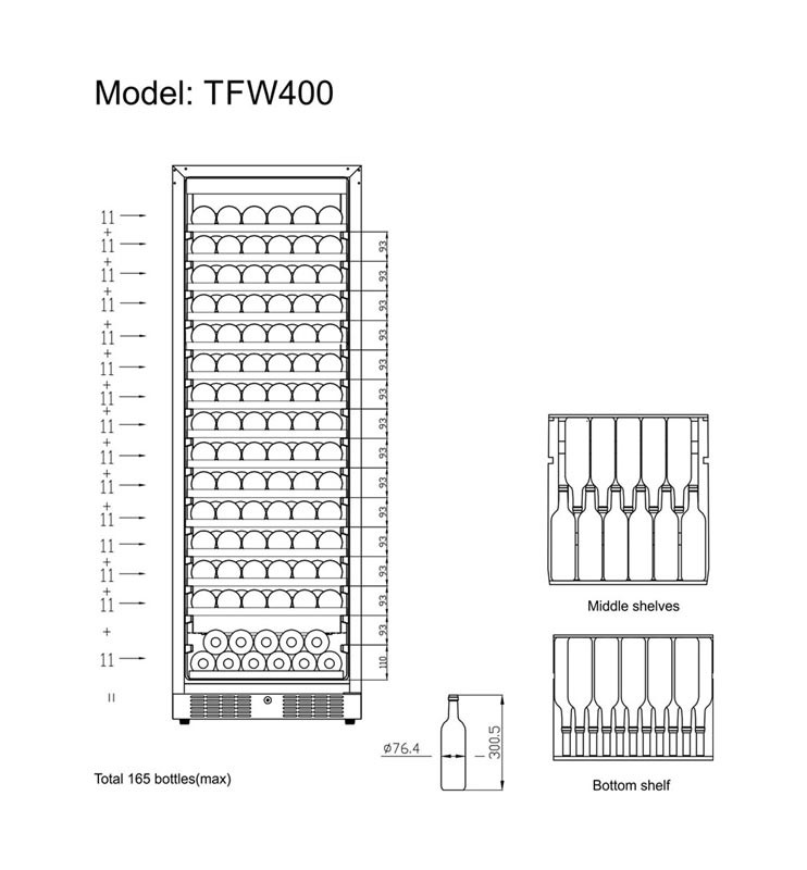 В инструкции холодильный винный шкаф Tefcold TFW400-F освещены такие вопросы: как пользоваться, как подключить, как установить, как выставить температуру, как установить, возможные неисправности и их устранение, инструкция на английском языке