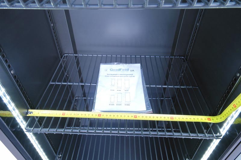 Вопросы про Шкаф холодильный GoodFood BC480BB2LED черный-черный