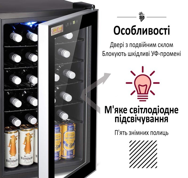 Барный холодильник GoodFood BC75 предназначен для охлаждения и хранения напитков: пива, сока, воды.