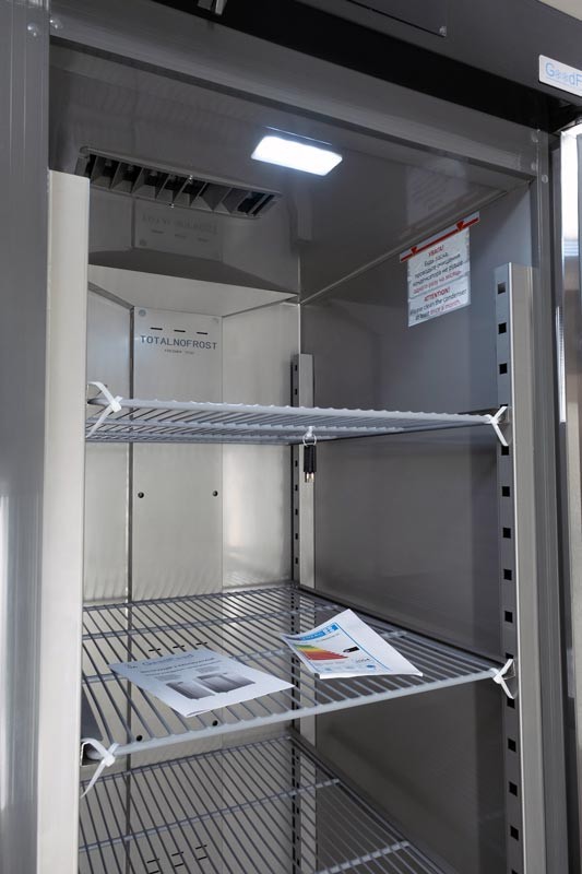 Холодильный шкаф GoodFood GF-GN1200TNS-HC выполнен из нержавеющей стали и соответствует санитарным требованиям:
