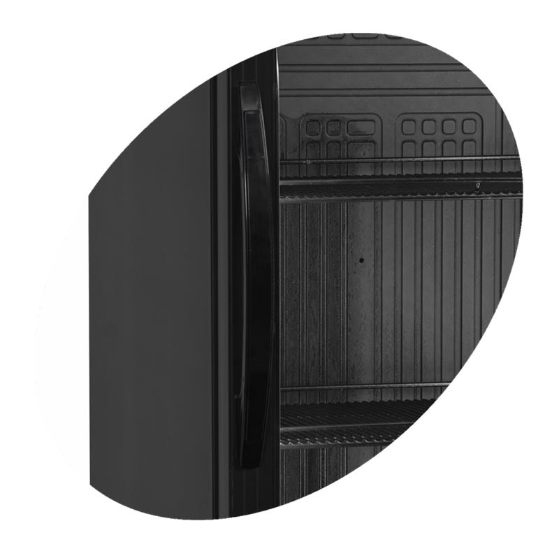 Холодильный шкаф CEV425 BLACK с абсолютно черным покрытием является отличной альтернативой белому оборудованию. Благодаря черному покрытию, содержимое шкафа выглядит более привлекательно и элегантно.