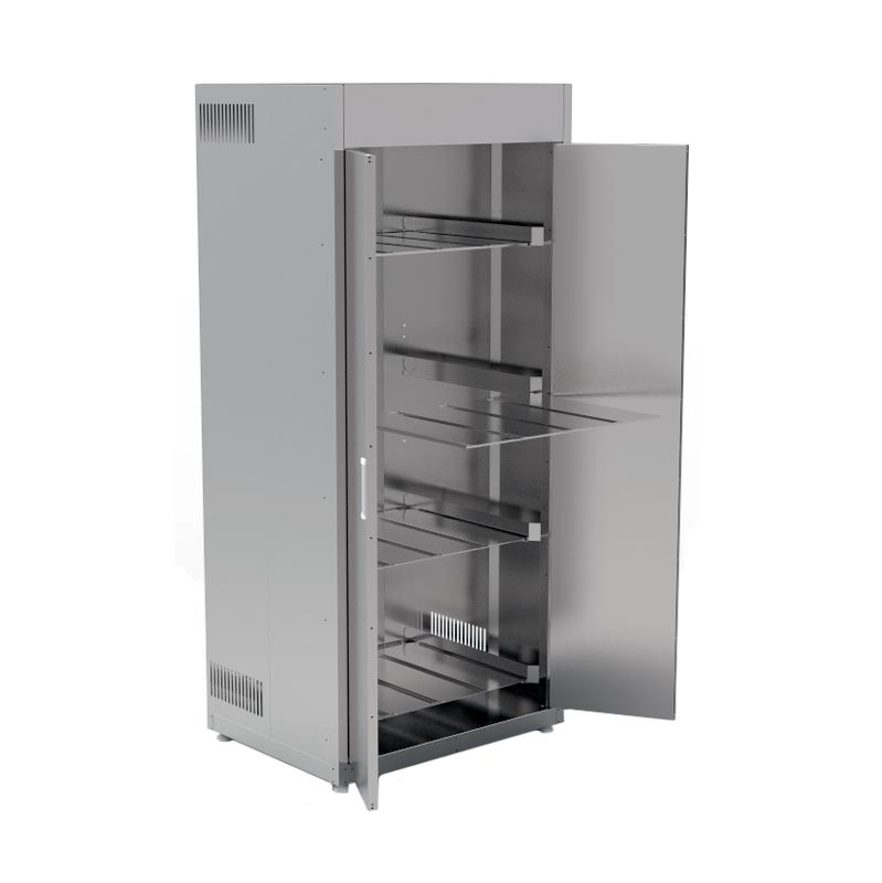 В боковых стенах присутствует двухуровневая вентиляция, позволяющая потокам воздуха свободно циркулировать внутри шкафа.