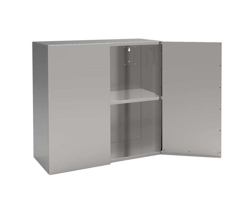 Навесной шкаф КИЙ-В КМ-ПН-2ДР предназначен для хранения посуды, инвентаря, кухонных принадлежностей. Используется как модуль в составе кухни из нержавеющей стали.