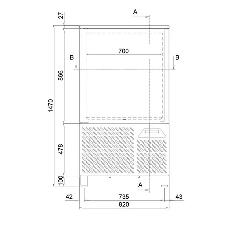 Производительность заморозки: 25 кг., от +70 C до -18 C за 240 мин.
