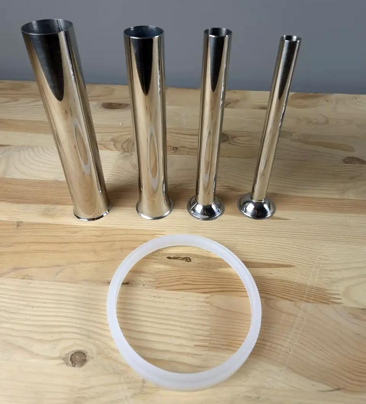 В комплекте со шприцом Vektor TV7L поставляются несколько насадок разного диаметра, что дает возможность изготавливать разные виды продукции: сосиски, сардельки, домашнюю колбасу, охотничьи колбаски и другие мясные деликатесы. Устойчивая база обеспечивают безопасную и комфортную работу даже при интенсивном использовании.