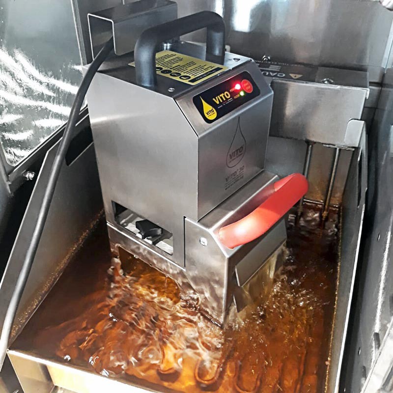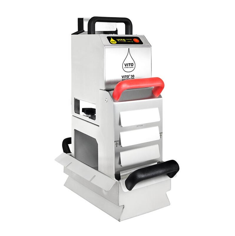 Система фильтрации фритюрного масла Vito 30 автоматически очищает фритюр непосредственно в горячей фритюрнице. При использовании системы удаляются обугленные частицы, кусочки продукта, микрочастицы (до 5 микрон) уменьшается запах, загрязнение