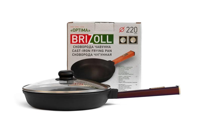 Чугунная сковорода со стеклянной крышкой Optima Bordo 220х40 мм Brizoll O2240-P2-C