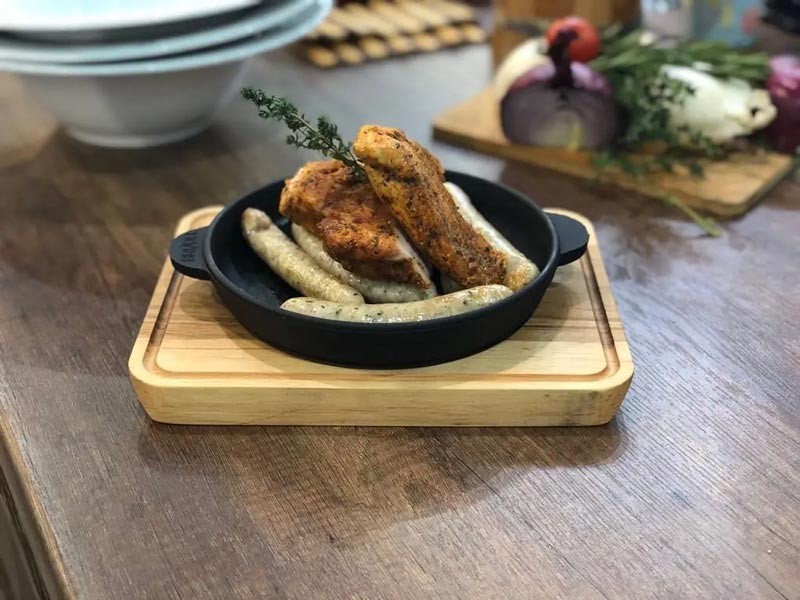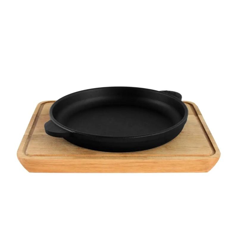 Чугунная мини сковорода на деревянной подставке Brizoll H1825-D, объемом 0,56 л., чаще всего используется для порционной подачи блюд в ресторанах. В порционной сковородке можно приготовить мясные, рыбные блюда, овощи, омлет, все, что предусматривает подачу в горячем виде.