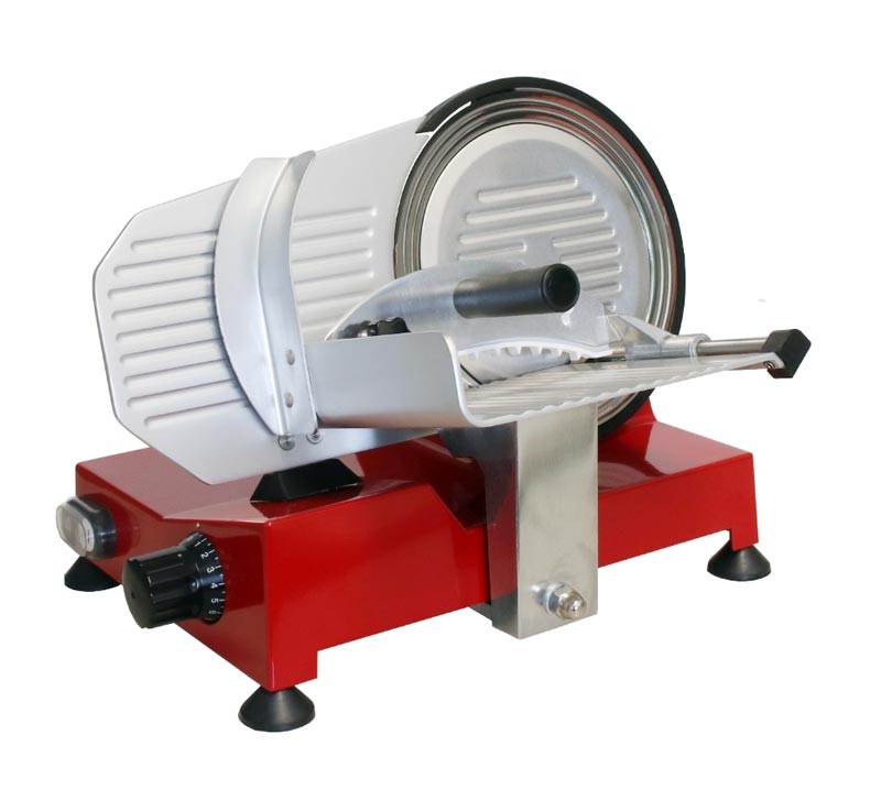Ломтерезка FY 220 RT с ножом с тефлоновым покрытием, диаметром 220 мм. Тефлоновое (антипригарное) покрытие на ноже снижает трение и предотвращает прилипание продукта к лезвию во время нарезки. Корпус изготовлен из алюминия окрашенный в красный цвет.