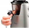 Обновленная конструкция шнека для наилучшей переработки волокнистых фруктов и овощей: белой и красной капусты, шпината, сельдерея, порея и т.п. При этом сведена к минимуму нагрузка на шнек и мякоть остается под ним, что облегчает приготовление живого сока.