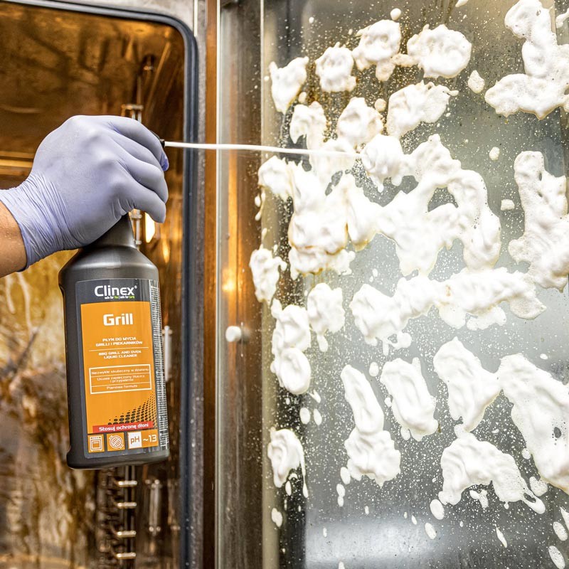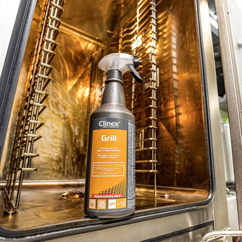 Профессиональное чистящее средство Clinex Grill для гриля и духовки с очень сильным эффектом для удаления пригоревшего жира, пригара и дыма.