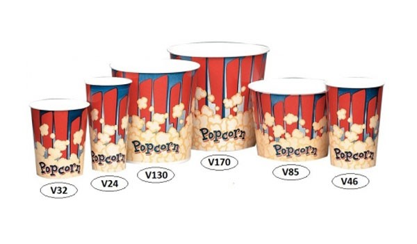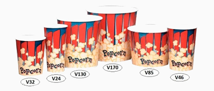 Бумажные стаканчики для попкорна V32 сделаны из плотного жиро стойкого картона высокого качества.