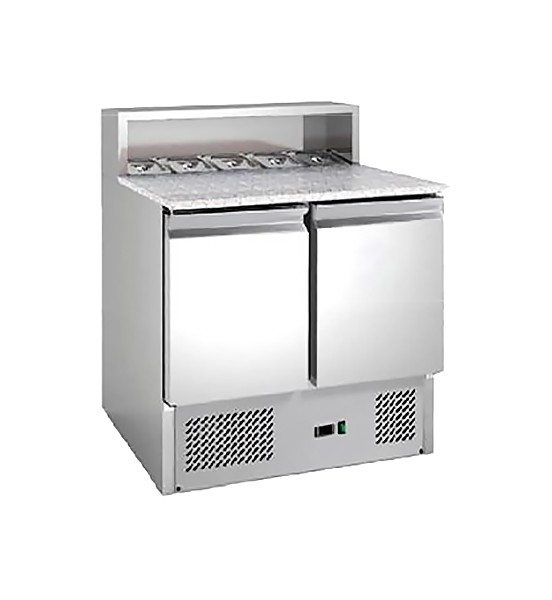 Холодильный стол для пиццы с салат-баром Hurakan HKN-GXSD2GN служит для хранения заготовок, необходимых для приготовления пиццы. На гранитной поверхности готовят краст и укладывают начинку.