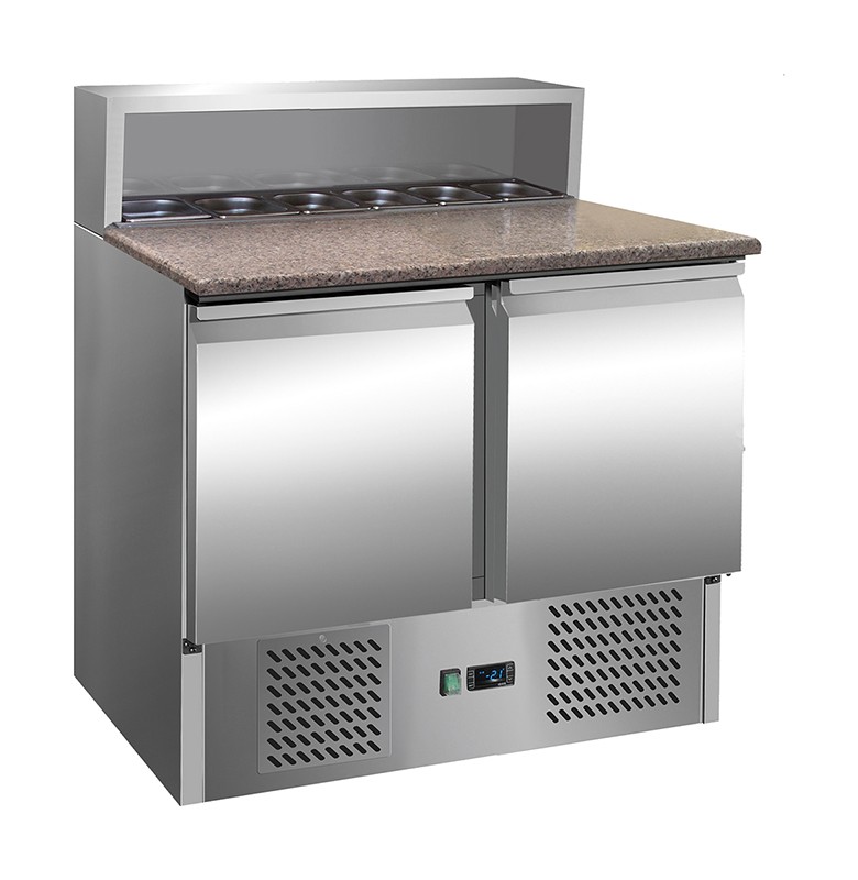 Холодильный стол для пиццы с салат-баром REEDNEE PS900 служит для хранения заготовок, необходимых для приготовления пиццы. На гранитной поверхности готовят краст и укладывают начинку
