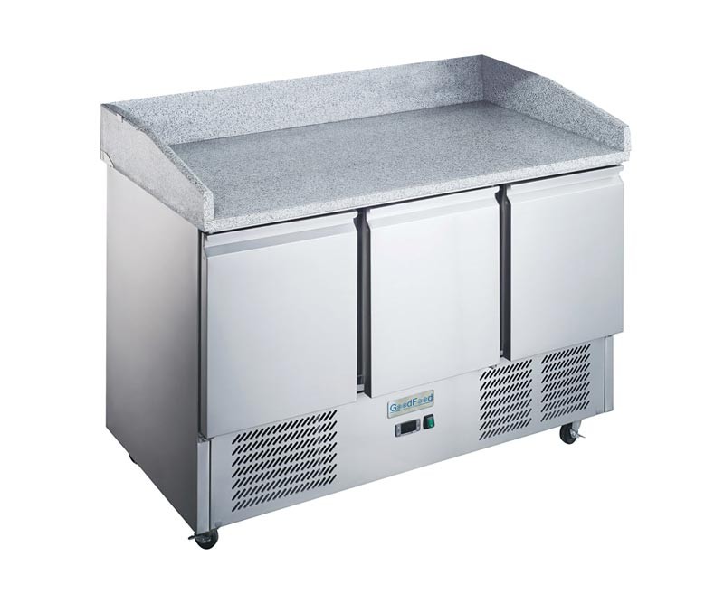 Холодильный стол для пиццы GoodFood GF-S903PZ-HC служит для хранения заготовок, необходимых для приготовления пиццы. На гранитной поверхности готовят краст и укладывают начинку