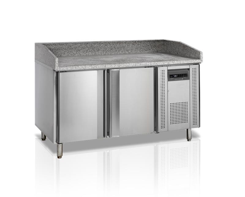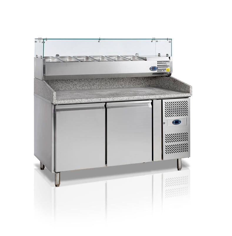 Холодильный стол для пиццы с гранитной поверхностью может использоваться с витриной надстройкой VK38-150 под емкости GN 1/3.
